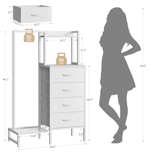 Yoobure LED Narrow Nightstand with Charging Station - Slim Dresser for Bedroom Narrow Side Table Storage Cabinet