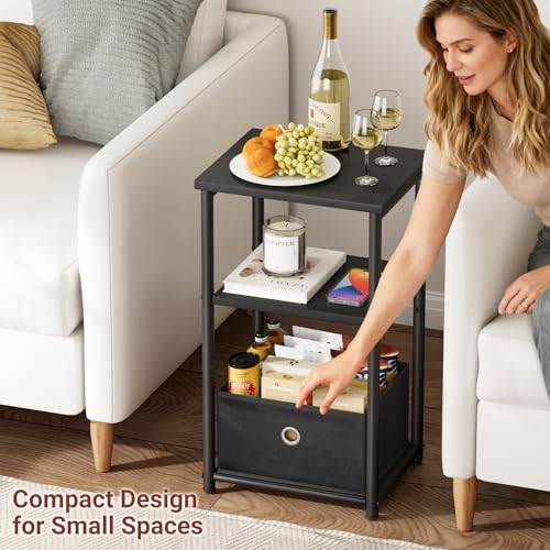 KIMBORA 3 Tier Small Side Table with Storage Basket