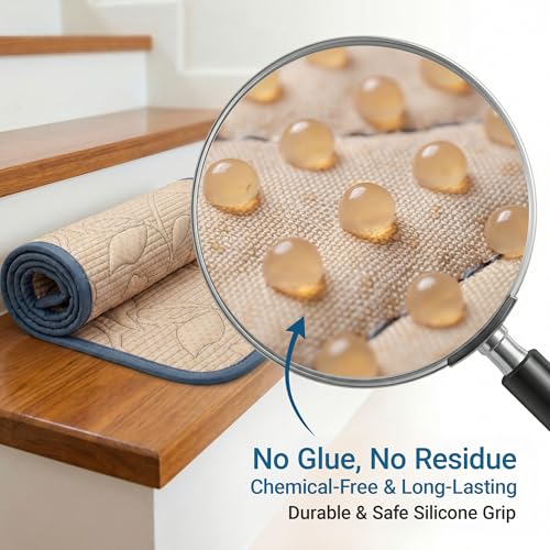 Non Slip Stair Treads for Wooden Steps 8x30 – Thick Cushioned Carpet Stair Mats with Silicone Grip Backing