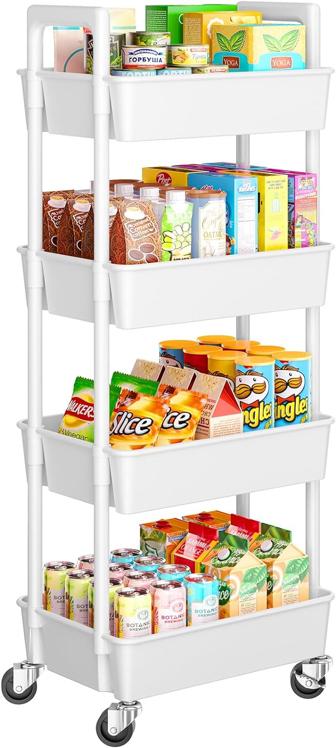 HUANUO Mobile Standing Desk with Wheels and Storage Basket
