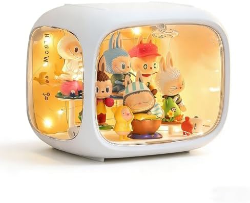 Display case for Figures with Light Adjustable Display Stand Clear Acrylic Display Box with Door Dust and Moisture Proof Suitable for Lego Collectibles Action Figures Pop Mart