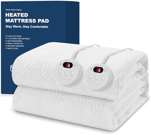 Heated Mattress Pad King Size - Embossed Electric Mattress Pad Cover Dual Control - 1-10 Hours Auto Shut Off with Deep Pocket White