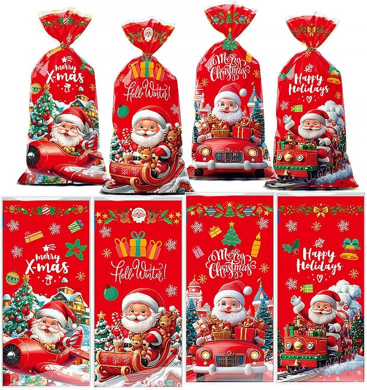 GLSY 50 Pcs Merry Christmas Gift Bags - Merry Xmas Santa Claus Snowman Treat Bags