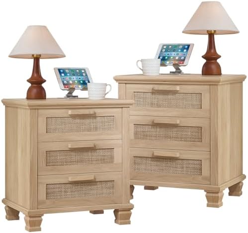Rattan Nightstand Set of 2 with Drawers