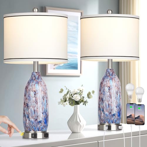 Cinyirong 26" Coastal Glass Table Lamps Set of 2 for Living Room
