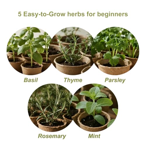 5 Herb Garden Kit with Wooden Box - Including Basil