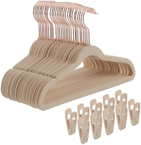 Tonswachic Kids Velvet Hangers 30 Pack - 14'' Inch Premium Non Slip Kids Felt Hangers for Clothes - Ultra Thin Baby Felt Hangers for Youth Childrens' Closet with 10 Hanger Clips - Beige