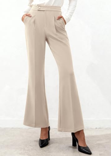 KIRUNDO Womens Dress Pants High Waisted Wide Leg Pleated Trousers Flare Palazzo Slacks Pockets Business Casual Outfits