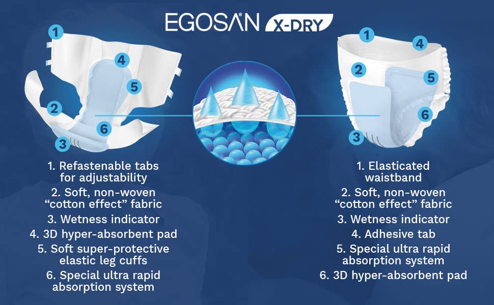 Egosan Adult Incontinence Pull Up Underwear 8 Hour X-Dry Protection for Highest Absorbency with Adjustable Tabs Disposable for Men and Women (Medium (36-Count))