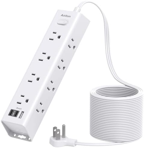 MCSCN Ultra Thin Flat Plug Surge Overload Protector Power Strip Wall Outlet with 8 AC Power Outlets 6 USB (2 USB C) for Home Office Dorm Travel Essentials 15A 1875W UL Released (5FT)
