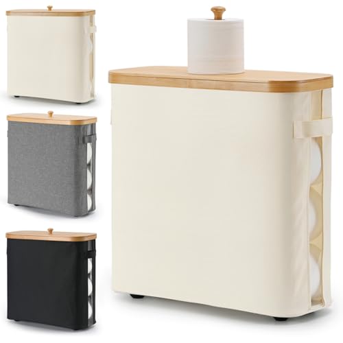 32L Bamboo Toilet Paper Storage Basket with Lid and Handle, Toilet Paper Organizer for Bathroom - Mega Capacity , Collapsible Bathroom Toilet Paper Holder with Storage