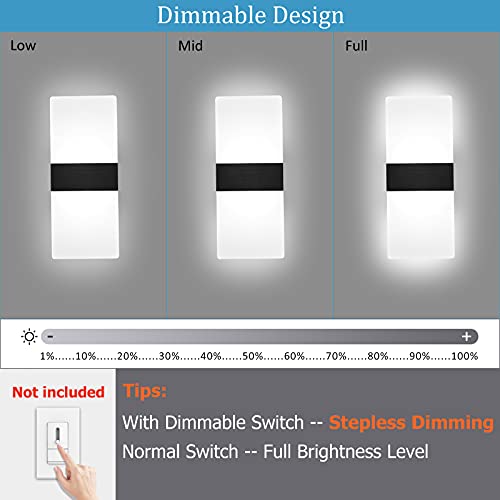 Lightess Modern Wall Sconces Set of Two Indoor LED Wall Mounted Lamp Hardwired Wall Lamp 12W for Bedroom Living Room Hallway