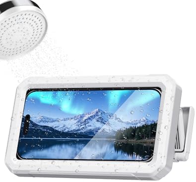 Shower Phone Holder Waterproof - 480° Rotatable Retractable Adjustable Phone Case for Shower - Bathroom Accessories Wall Mount Phone Holder for iPhone 17/16 Pro Max