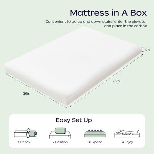 6 Inch Mattress for Kids With Cooling Gel Twin Memory Foam Mattress & Individually Wrapped Washable Removable Cover Single Mattress Medium Firm Mattresses Fiberglass-Free Certipur-Us Certified