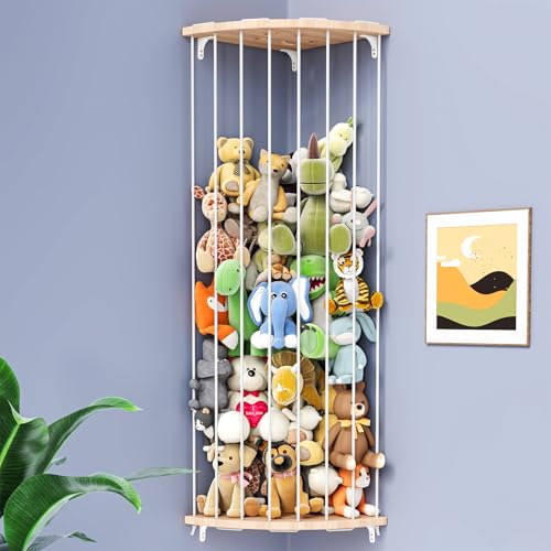 Zayysoha Stuffed Animal Storage & Toy Storage Organizer – Wooden Corner Hammock Shelf for Stuffed Animal Hammock Corner