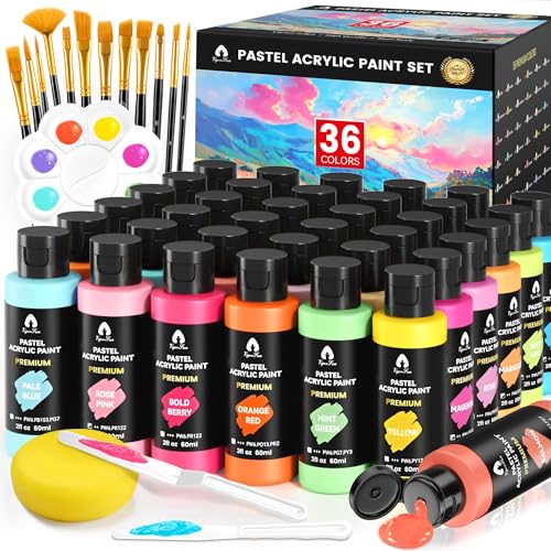 52 PCS Pastel Acrylic Paint Set with 12 Brushes
