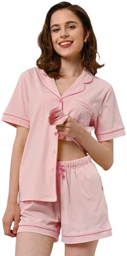 100% Cotton Pajamas for Women Sets 2 Pieces Pjs Button short sleeves with Pockets Soft Sleepwear Loungewear XS-XXL
