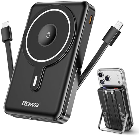 Small Portable Charger for iPhone 5000mAh 2 Packs with Built in Cable