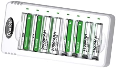 Rechargeable AA and AAA Batteries with 8 Bay Smart Charger
