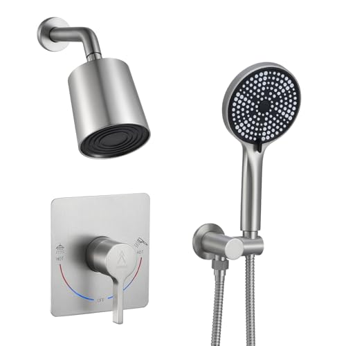 JQBQS Shower Faucet Set Rain Shower System Valve Kit with Head -3 Setting Handheld High-Pressure Shower Fixtures Valve Included (Brushed Nickel)