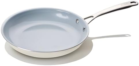 9.5" Ceramic Frying Pan with Stainless Steel Handle - Perfect Non Stick Frying Pans for Steak & Non Stick Cooking-Ceramic Pans Frying Pan Trendy Kitchen Essential for Young Chefs(Cream White)
