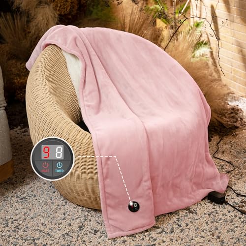 GOTCOZY Heated Blanket Electric Throw 50''X60''- Electric Throw Blanket with One Touch Button 10 Heating Level & 9 Time Settings Heating Blanket