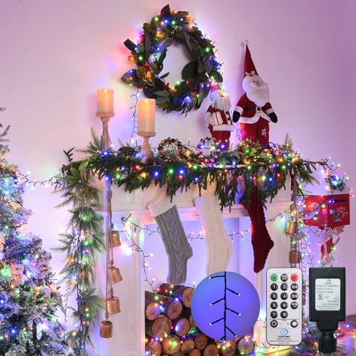 Cluster Lights Christmas 1000 Led Fairy Lights Green Wire 108FT Twinkle Lights with Remote 8 Modes String Lights Timer Plug in Firecracker Fairy Light for Outdoor Valentines Day Decorations