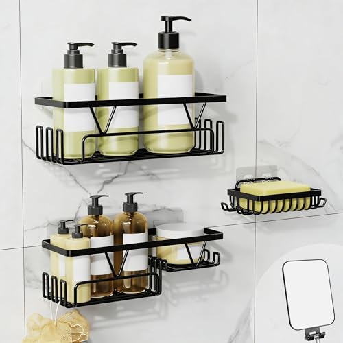 KEGII 4 Pack Adhesive Shower Caddy with Fogless Shower Mirror