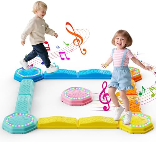 Holyton Music Light Up Balance Beam and Toddler Stepping Stones 13 Pieces