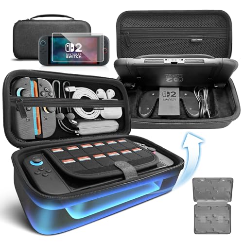 AceGamer Large Capacity Carrying Case for Nintendo Switch 2 (2025) - 3 in 1 Accessories Bundle with Screen Protectors