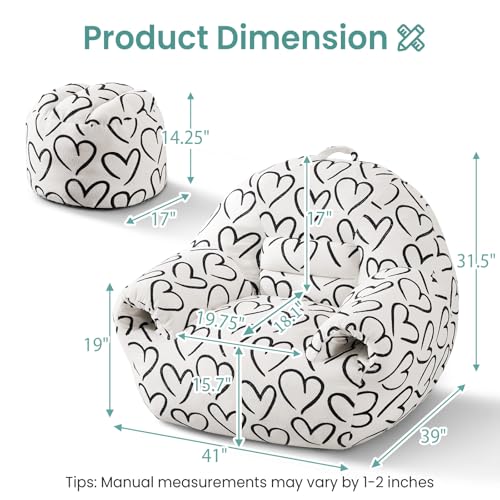 DAICO Bean Bag Chairs for Adults Giant Bean Bag Chair with Ottoman Plush Beanbag Sofa with Armrests Comfy Accent Chair Single Lazy Sofa with Foam for Living Room Reading Bedroom - Cordate Pattern