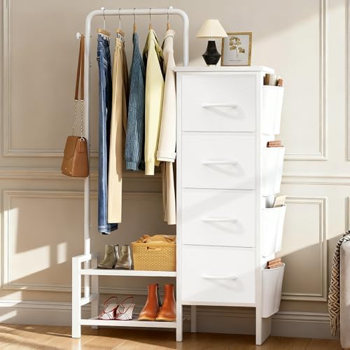 Dresser with Hanging Rack - 4 Drawers & 4 Side Bags