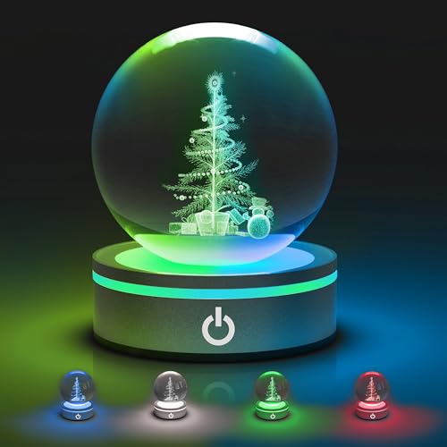 L LOHAS LED 3D Crystal Ball Night Light-Laser Engraved Christmas Tree with Silver Base