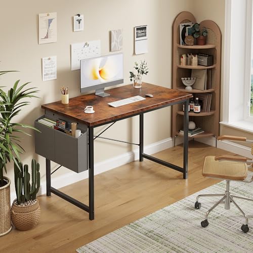 NEWBULIG 44.09 Inch Computer Desk Home Office Desks for Bedroom Writing Gaming Work Study Table with Storage Bag for Small Spaces