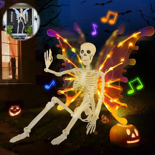RGJ 36" Skeleton Halloween Decorations with Light up Fairy Wing