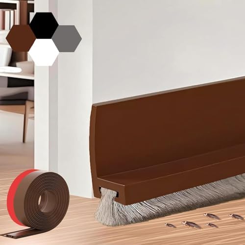 39-inch Door Draft Stopper with Brush - Adhesive Weather Stripping Seal for Exterior/Interior Doors | Under Door Sweep Blocks Drafts