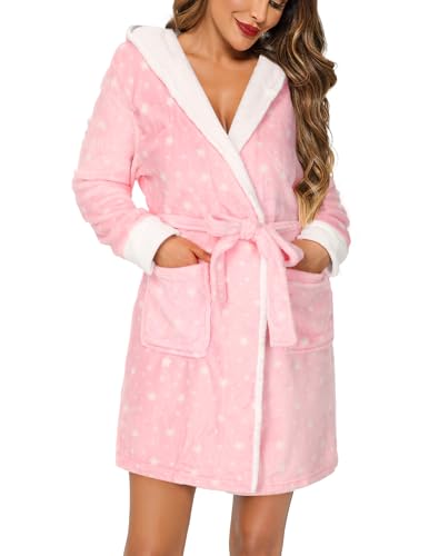 HOTOUCH Womens Hooded Bathrobe Fleece Robe Super Soft Plush Robe Velour Bathrobe