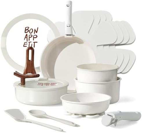 CAROTE 18Pcs Ceramic Cookware Set with Detachable Handle