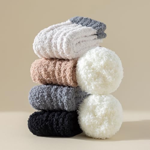 fauson Fuzzy Socks for Women - 5 Pairs Slipper Socks for Women