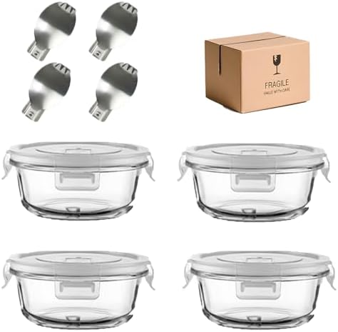 1.5 Cup Round Glass Food Containers with Lids and Folding Spoon