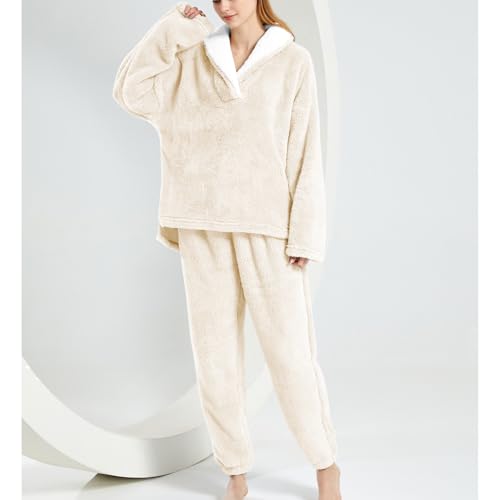 Womens Fluffy Pajamas Set Fleece Pullover Pants Oversized Plush Sleepwear Cozy Fuzzy Loungewear Loose Warm Pjs Sets