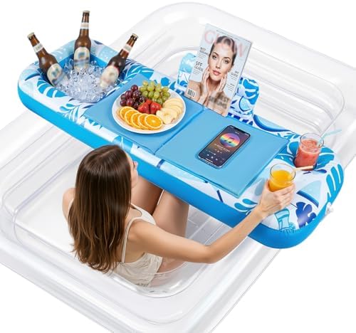 Ayeboovi Upgraded Inflatable Tray for Tanning Pool Float - 61" L x 15.7" W Non-Slip Sunbathing Bed Tray with Cooler Ice Bar for Tanning Lounge Raft & Blow up Suntan Tub Water Floatie