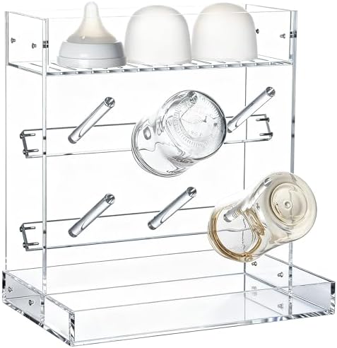 Acrylic Clear Baby Bottle Drying Rack with 2 Tiers – Space-Saving Vertical Baby Bottle Holder Organizer – Countertop Bottle Dryer Stand for Pacifiers