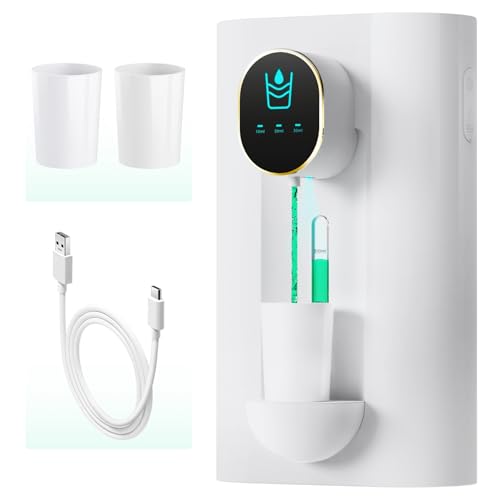 Oylik Automatic Mouthwash Dispenser 18.26 oz Touchless Mouthwash Dispenser for Bathroom 2 Magnetic Cup USB Rechargeable and 3 Dispensing Levels with Led Screen Wall-Mounted or Countertop Use-White