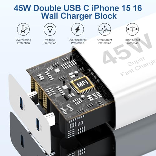 45W Dual Port iPhone 17 16 15 Charger Fast Charging and 6ft 10ft Type C to C Cable Cord Long