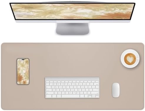 Desk Pad PU Leather Large Mouse Pad Laptop Computer Desk Mat Table Blotter Waterproof Non-Slip Desktop Protector Durable Writing Pad for Office and Home (Beige