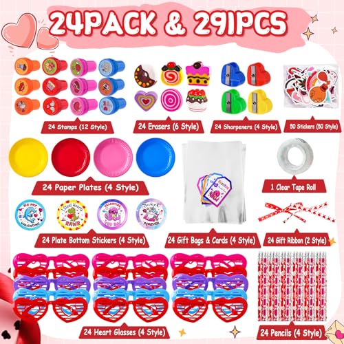 291pcs Stationery Set Valentines Day Gifts for Kids Classroom Exchange with Paper PLate