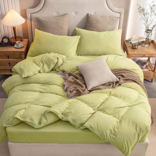 PURE ERA Jersey Knit Duvet Cover Set 100% T-Shirt Cotton Super Soft Comfy 3pc Bedding Set with Zipper Closure (Solid Yellow Green