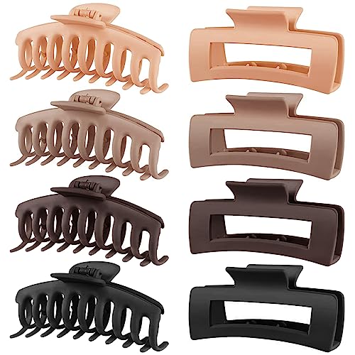TOCESS 8 Pack Neutral Big Hair Claw Clips for Women Large Claw Clip for Thin Thick Curly Hair 90's Strong Hold 4.33 Inch Nonslip Matte Hair Clips