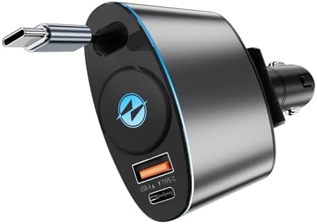 Retractable 66W Fast Car Charger - 1 Type-C Retractable Cable (35.4 in) for iPhone 16/15